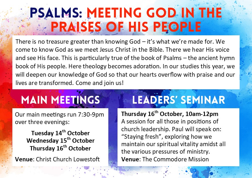 And finally on Thursday to conclude this years event looking at Psalm 56 and ‘The God Who Cares’.